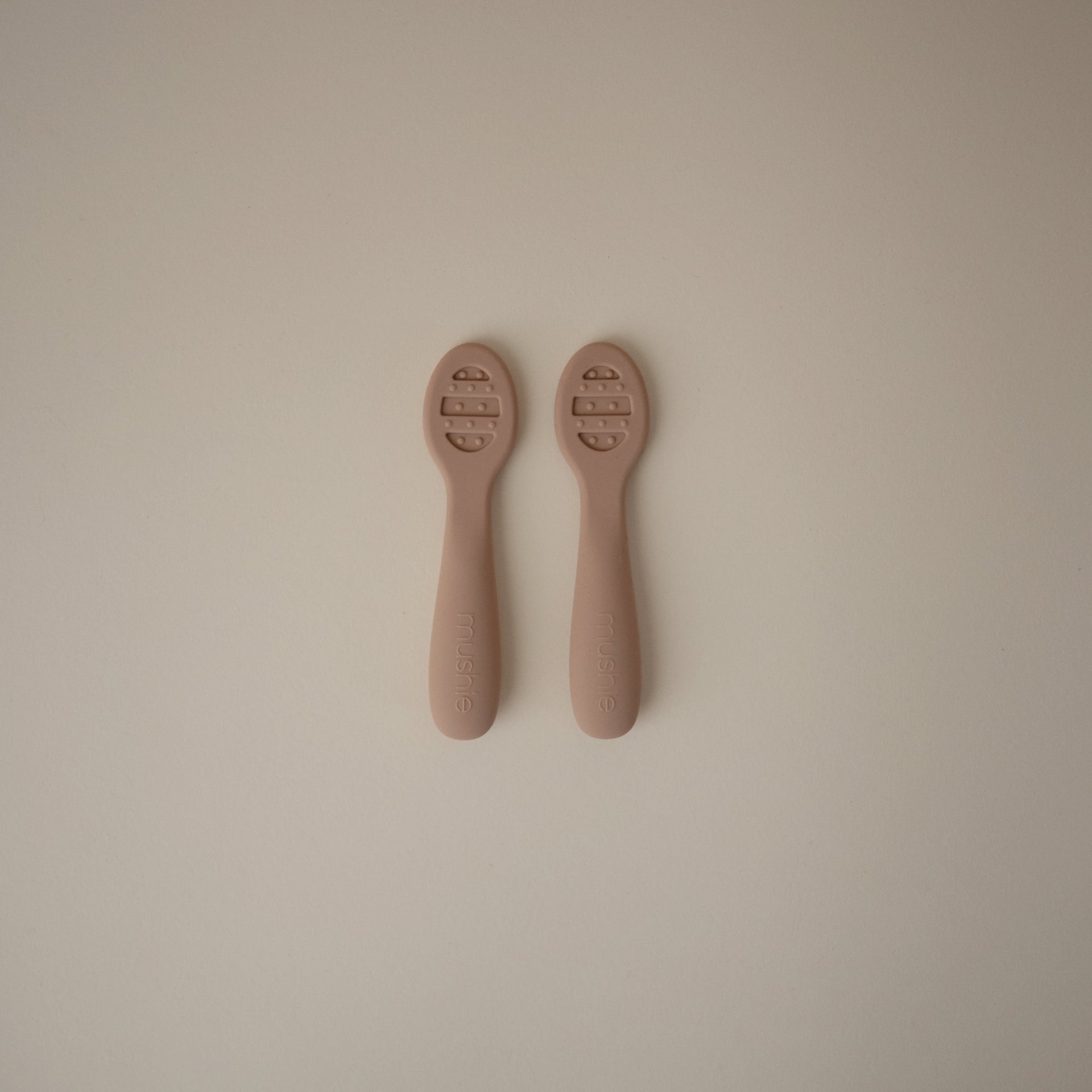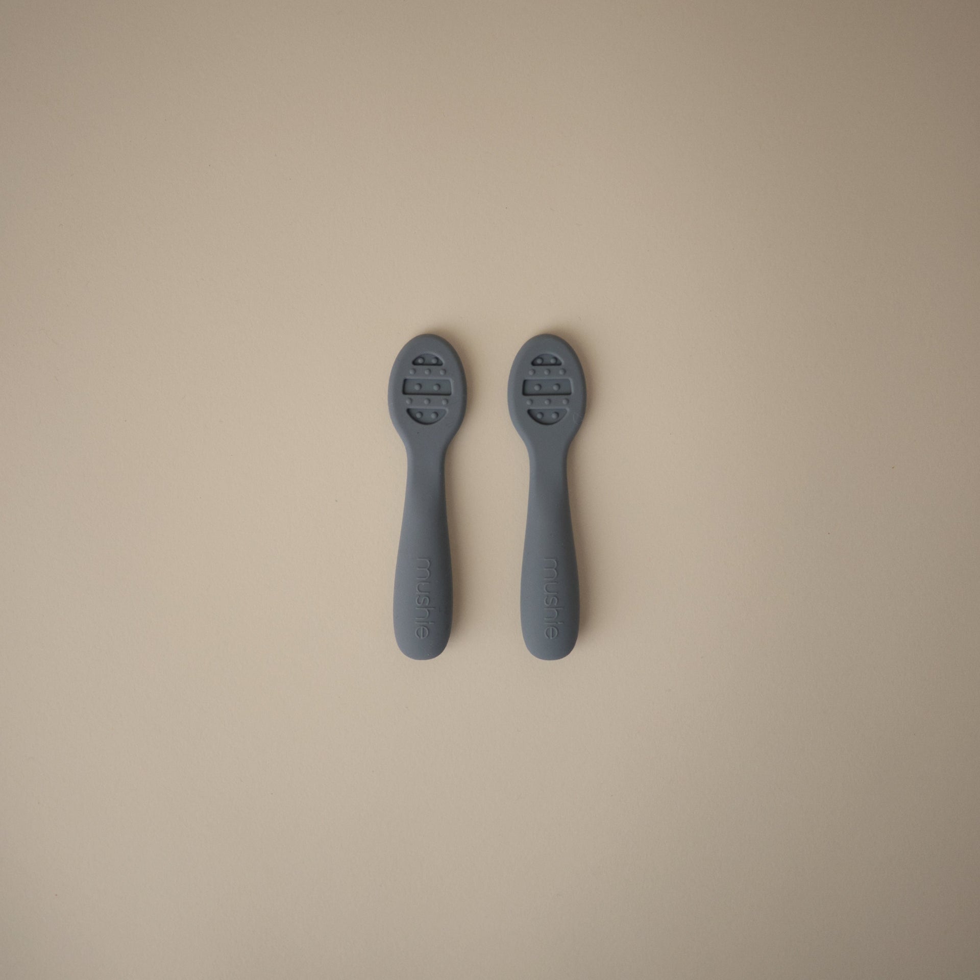 Our First Feeding Baby Spoons are designed to make your little one's transition to self-feeding smoother. Stage 1 has a solid surface without holes, ideal for thin purees and yogurts. When babies are ready for heartier textures, they can transition to Stage 2 with open slots for scooping thicker foods like oatmeal and mashed potatoes. Both versions include sensory dots on each side, providing a soothing experience for teething gums. The flat design ensures there's no wrong way to pick up the spoons, making it easy for little hands to manipulate without requiring wrist rotation.