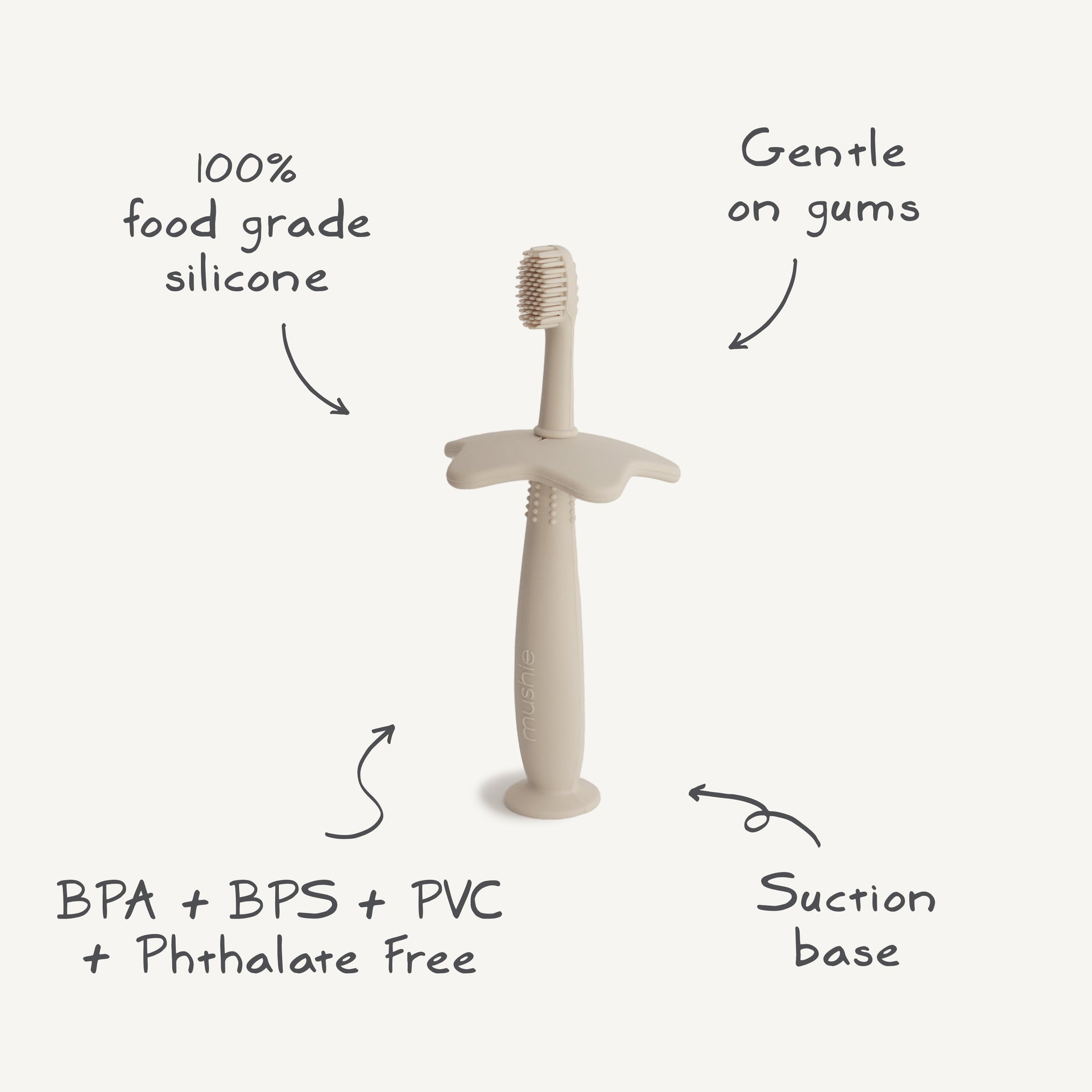 Introduce your little one to brushing independently while building good habits with our playfully-designed toothbrush. Made from 100% food grade silicone, this toothbrush is designed with super soft bristles that gently clean and stimulate your little one's gums and teeth.