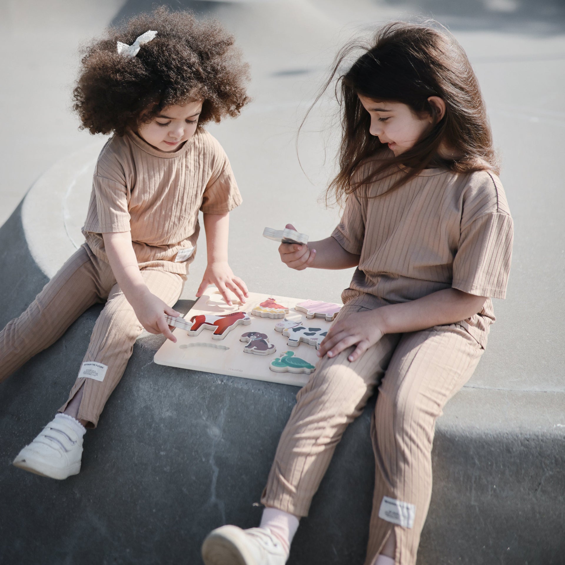 Introduce children to farm animals with our wooden farm puzzle. Crafted from FSC certified wood and non-toxic paint, this is a timeless toy designed to help teach little learners colors and spatial reasoning. The set includes eight barnyard animal themed pieces with smooth edges that are made for tiny hands. Littles will improve fine motor skills and hand-eye coordination as they grasp, manipulate and fit the pieces into their corresponding slots.