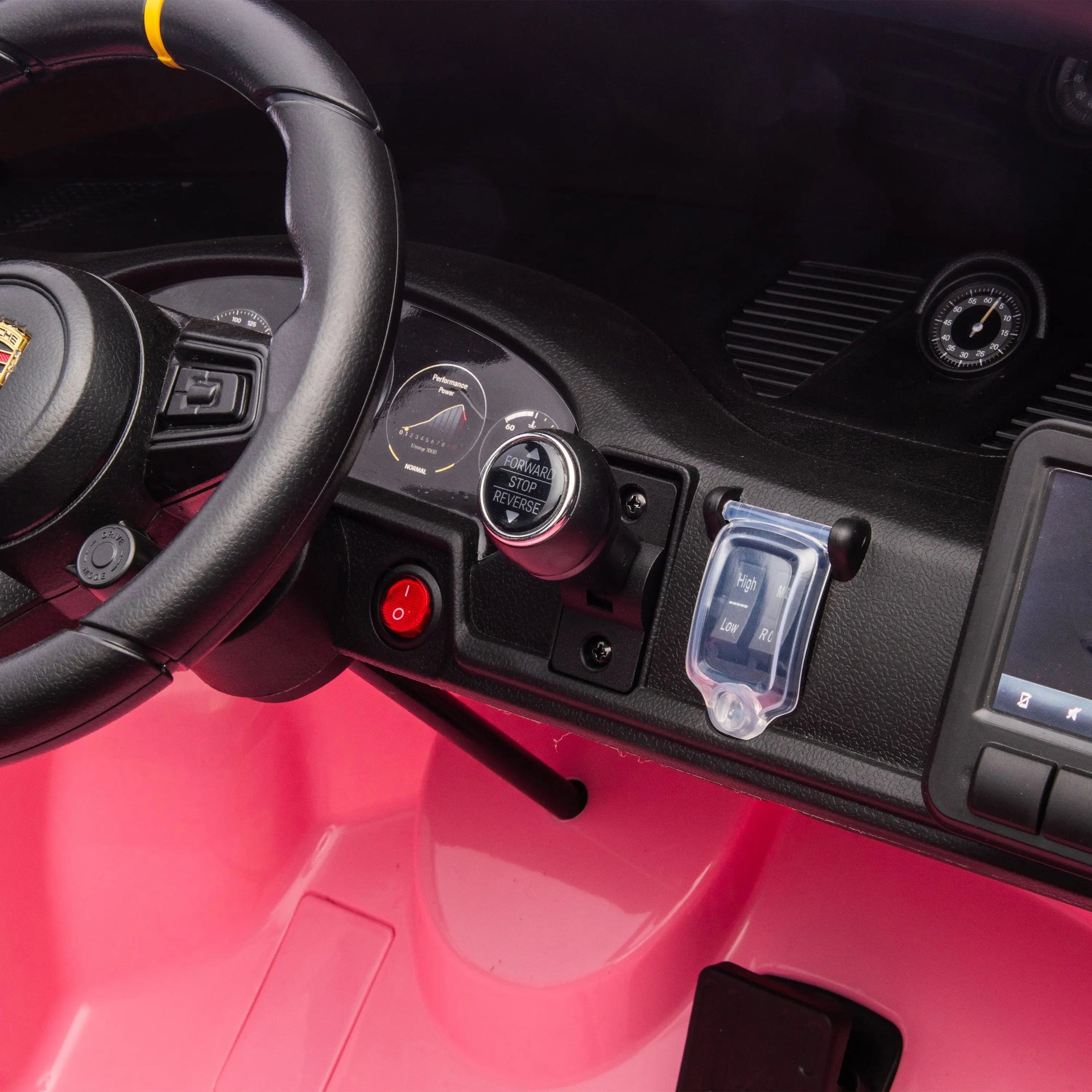 Ignite your child's imagination with the officially licensed Freddo Toys 24V Porsche 911 GT3 2-Seater Ride-On Car. Designed for young enthusiasts aged 6 and up, this stunning red ride-on replicates the iconic sports car with incredible detail. It offers a realistic driving experience with a pedal brake, button start, and an integrated music system with USB, radio, and Bluetooth connectivity for endless entertainment. The durable EVA tires ensure a smooth ride, while bright LED lights add to the authenticity and fun. With its comfortable leather seats and safety seatbelts, your child can enjoy hours of secure playtime, reaching speeds powered by 2 180-320W SILENT MOTOR. The remote control allows parents to supervise and assist, making it the perfect gift for aspiring drivers.
