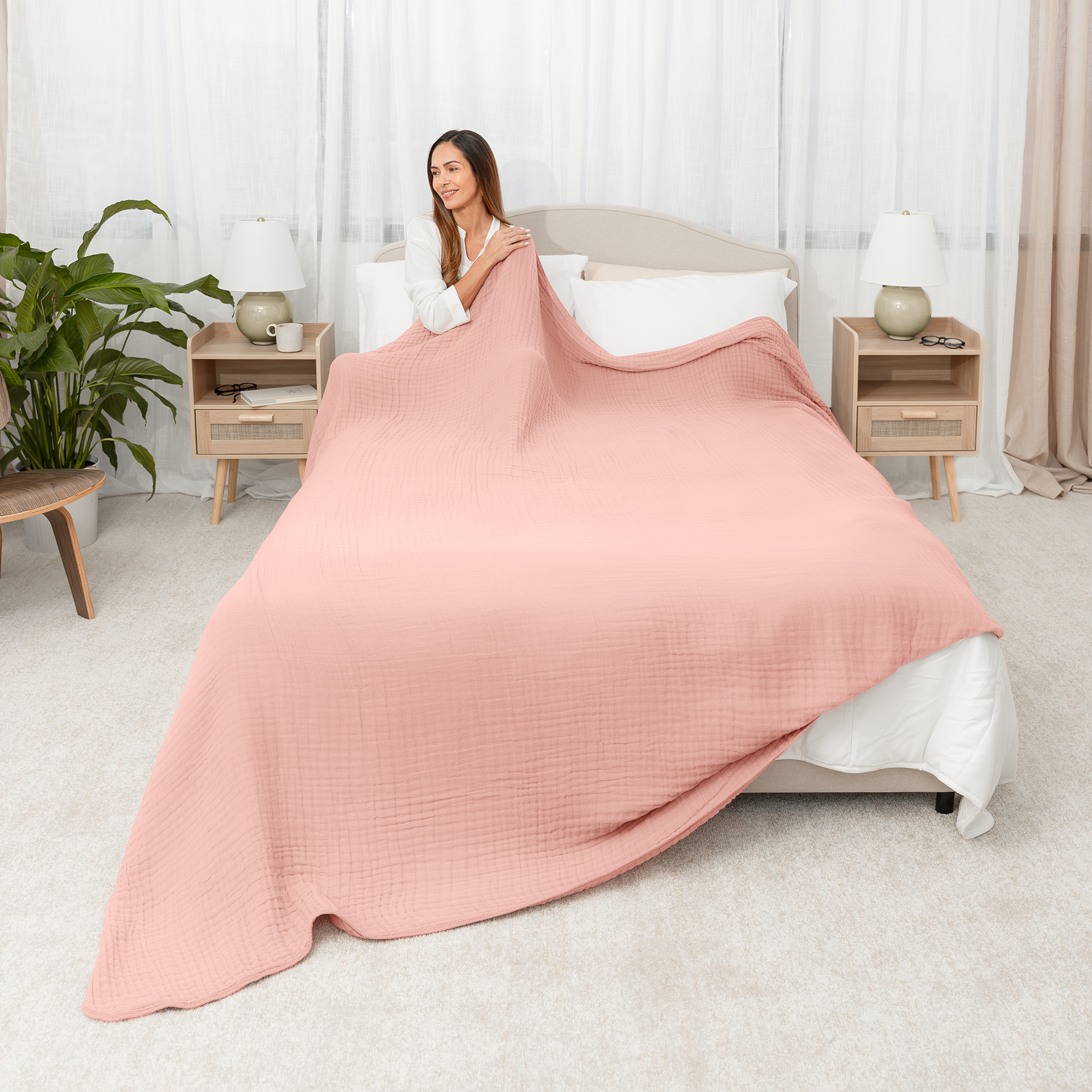 • Large Premium Muslin Blanket – Offering exceptional comfort in a stylish design this muslin throw blanket keeps you warm when you’re snuggling up on the couch, lounging in bed, or trying to stay a bit warmer on those cooler nights.
