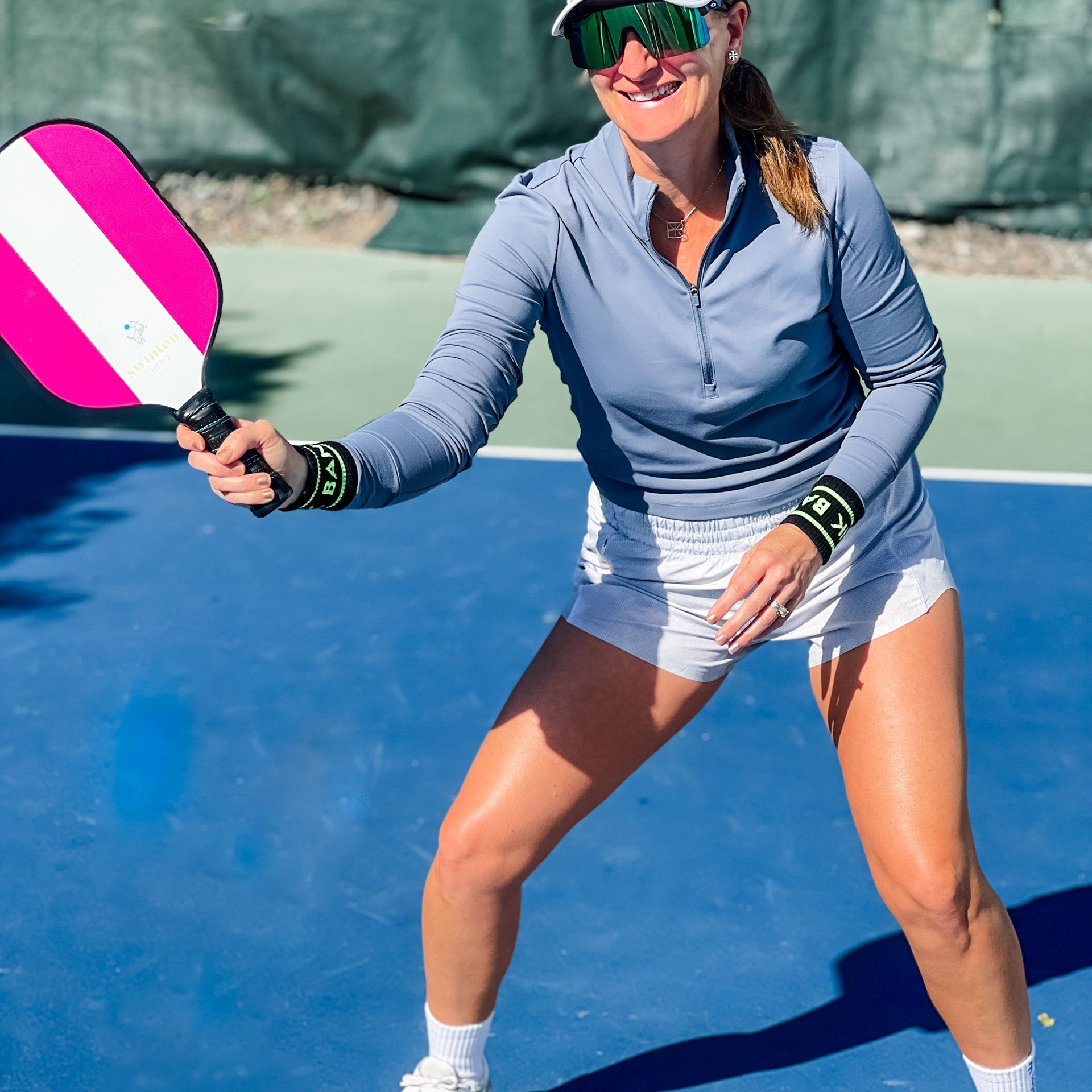 Be court-ready and fashionable with our Dink & Bang Pickleball Wristbands. Our ribbed and stretchy fabric is perfect to wipe the sweat away while you're dinking soft shots and banging winners. Score your style points with "Dink" and "Bang" printed on each wristband, and make an impression on the court that your opponents won't forget! Better yet, the double as beer koozies! Available in Blue and Black styles.
