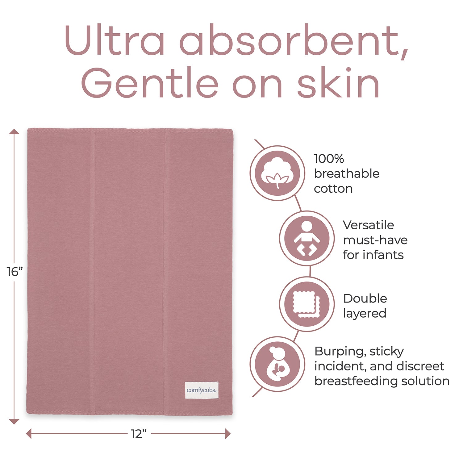 Cotton Burp Cloths by Comfy Cubs - Mauve