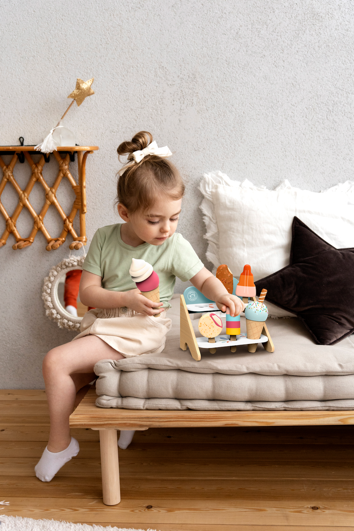 Indulge in hours of creative play with the Ice Cream Shop, a vibrant and charming wooden toy designed to spark joy and excitement in children.